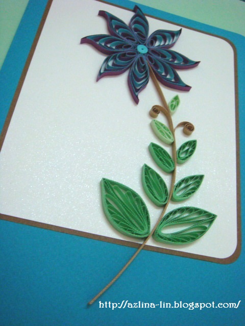 Remember the quilling blog hop I did early this month? Have a look at the link HERE. Look at the leaves. It's the same technique I used for the petals of this flower. The only difference is that I squeeze the middle part of the petal close together so that it looks like a petal. It can look like a leaf as well, if you use green colour quilling strips :).