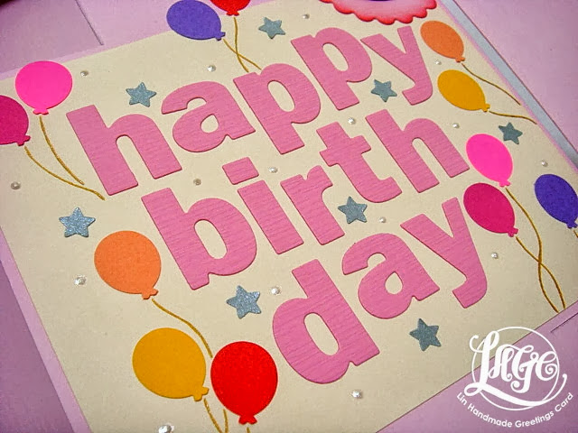 I wanted so badly to use the die-cut letters of Happy Birthday on the card. I tried to arrange them, but they won't fit in if they are arranged in a straight line!! So I had to arrange them in a way that all of them can fit in one space. Even though they are not in a straight line, I kinda like looking at them randomly arranged that way.... :D As long as you can read it, then its all good! :D